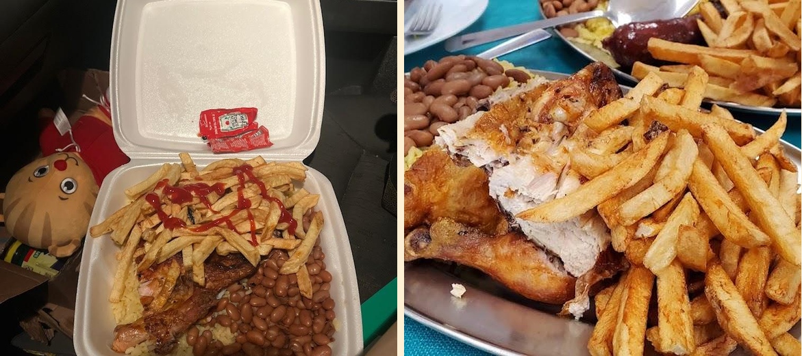 Popular dishes include Frango de Churrasco, Entrecosto, and T-bone steaks. Don't forget to try the sides like fries and rice with beans.